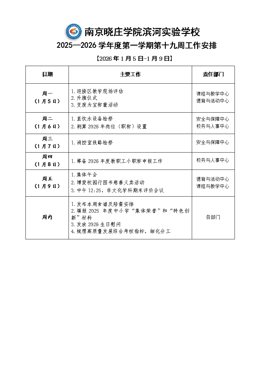 2025-2026学年度第一学期第十九周工作安排